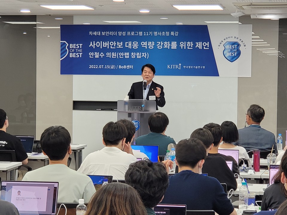 "안철수 국회의원 초청 제11기 BOB 특강" 을 개최하였다.